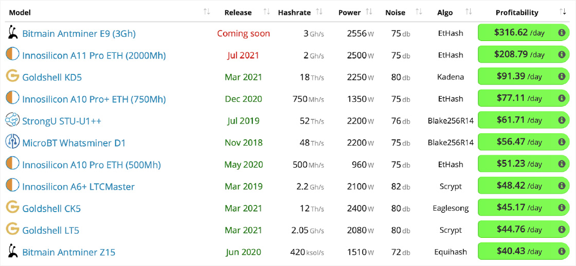 3マイニング機器の収益性