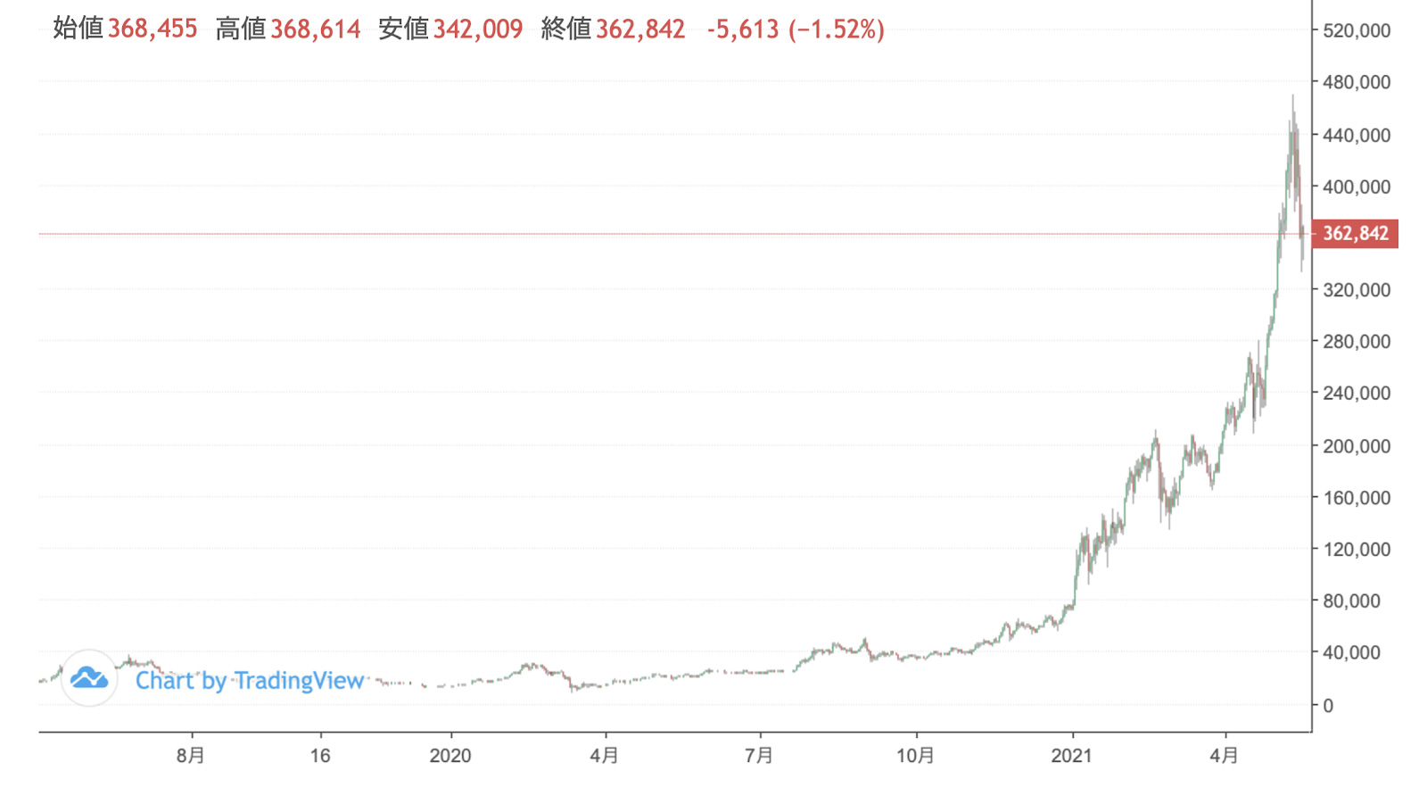 A仮想通貨の価格変動