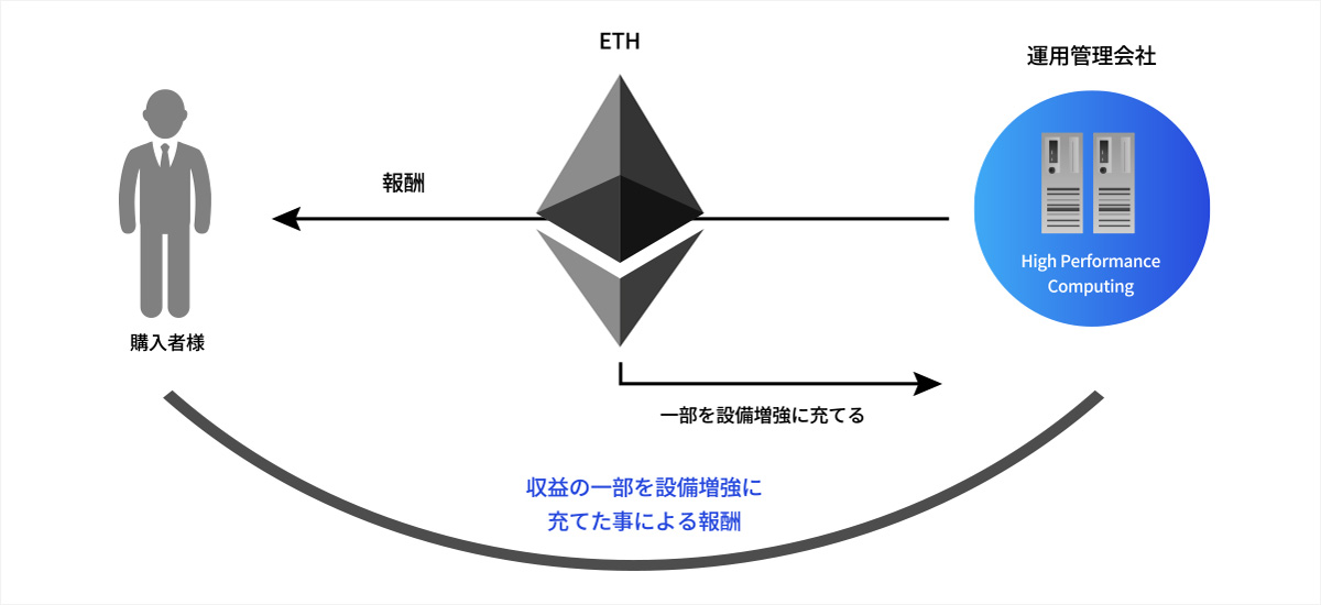 報酬はマイニングしたETHベースの暗号資産にてお支払いします。