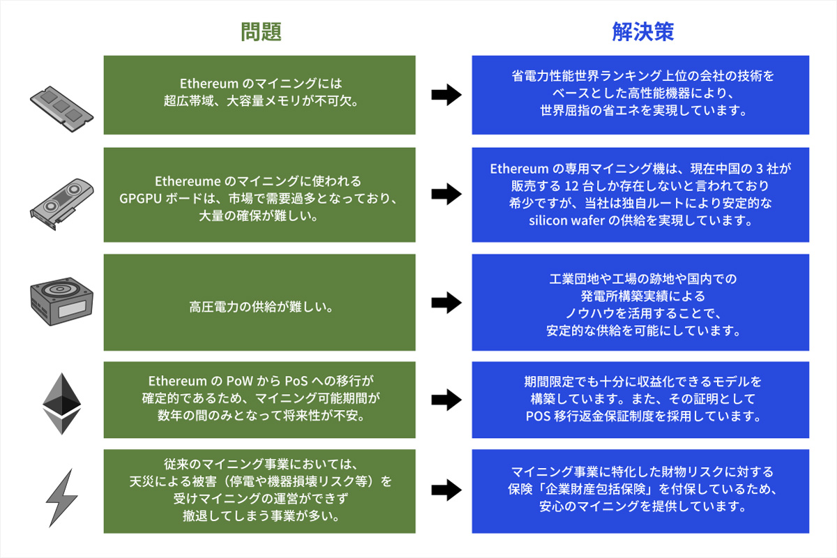 3つの優位性〜当社では、現在の機器の供給状況やマイニングの信頼性を考慮し、