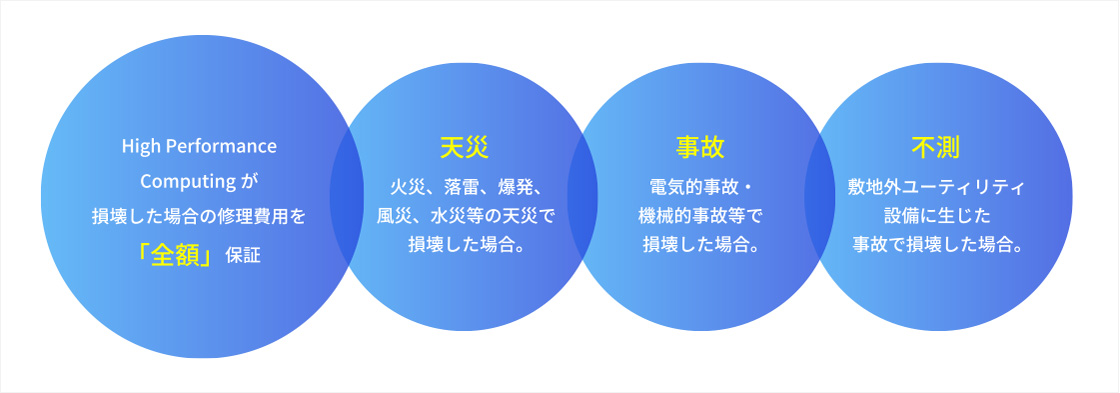 High Performance Computingに対して保険が付保されているため、災害や事故等の損壊で生じる修理費等を補償します。