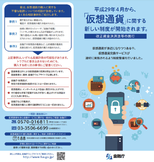2017年4月に法改正が行われ、仮想通貨に関する具体的な規制が盛り込まれた。2018年1月には仮想通貨取引所のコインチェックで仮想通貨「NEM(ネム)」の流出事件が発生したため、これを受けて他の取引所への立入検査、行政処分が行われ、その後規制を強化する改正法が2020年5月に施行されている。
